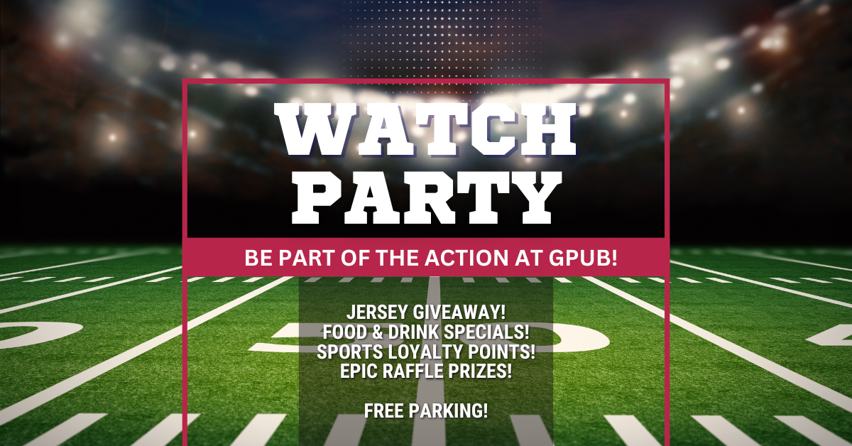 Score big at GPub this football season! Join us for our featured games and watch parties for the chance to win big prizes including sporting event tickets, jersey giveaways and swag!