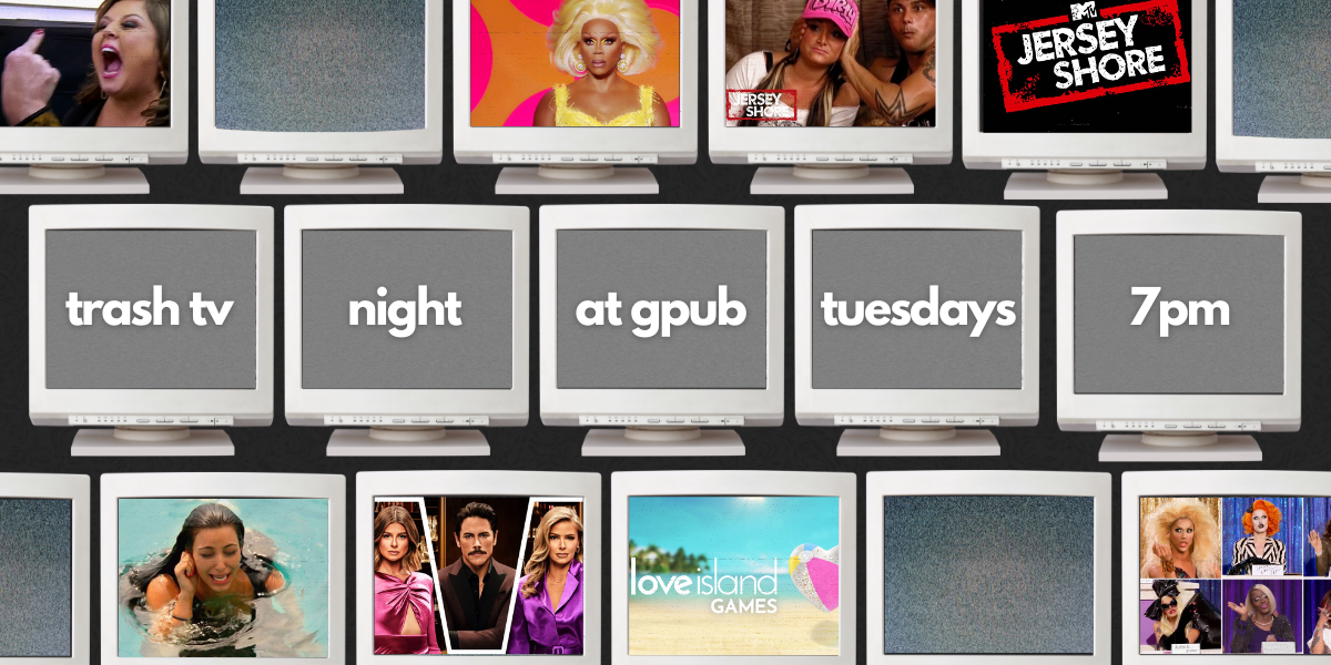 Join us at Providence GPub as we turn up the drama for Trash TV Night. Catch iconic reality reruns — Jersey Shore, Vanderpump Rules, Real Housewives and more — all leading up to our Love Island Games watch party. With wall-to-wall TVs, there’s not a single eye-roll, kiss, or recoupling you’ll miss.